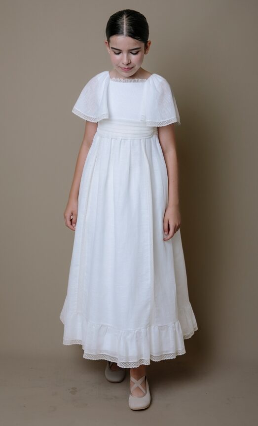 Es muy sencillo, solo hay que calcular las MEDIDAS FINALES que tendrá la niña en su comunión: