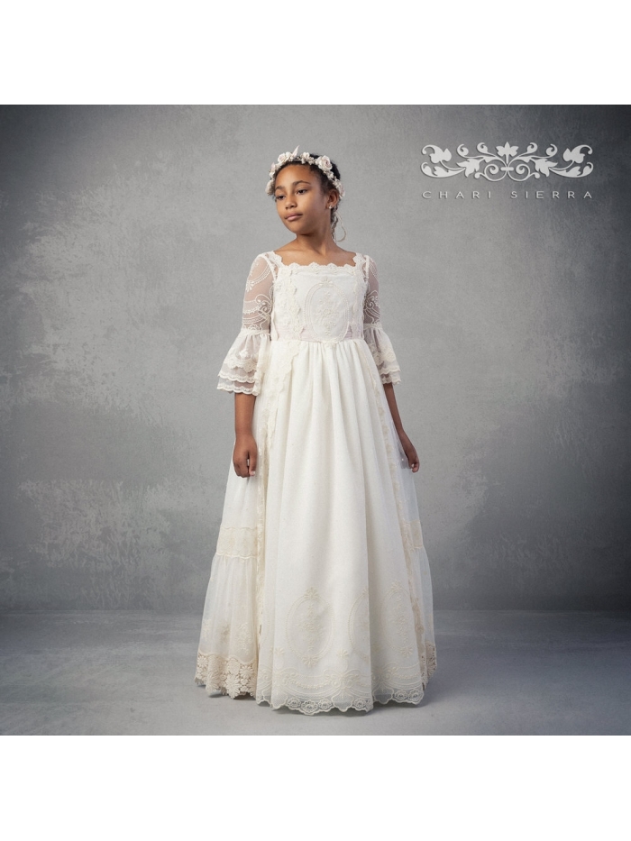 Es muy sencillo, solo hay que calcular las MEDIDAS FINALES que tendrá la niña en su comunión: