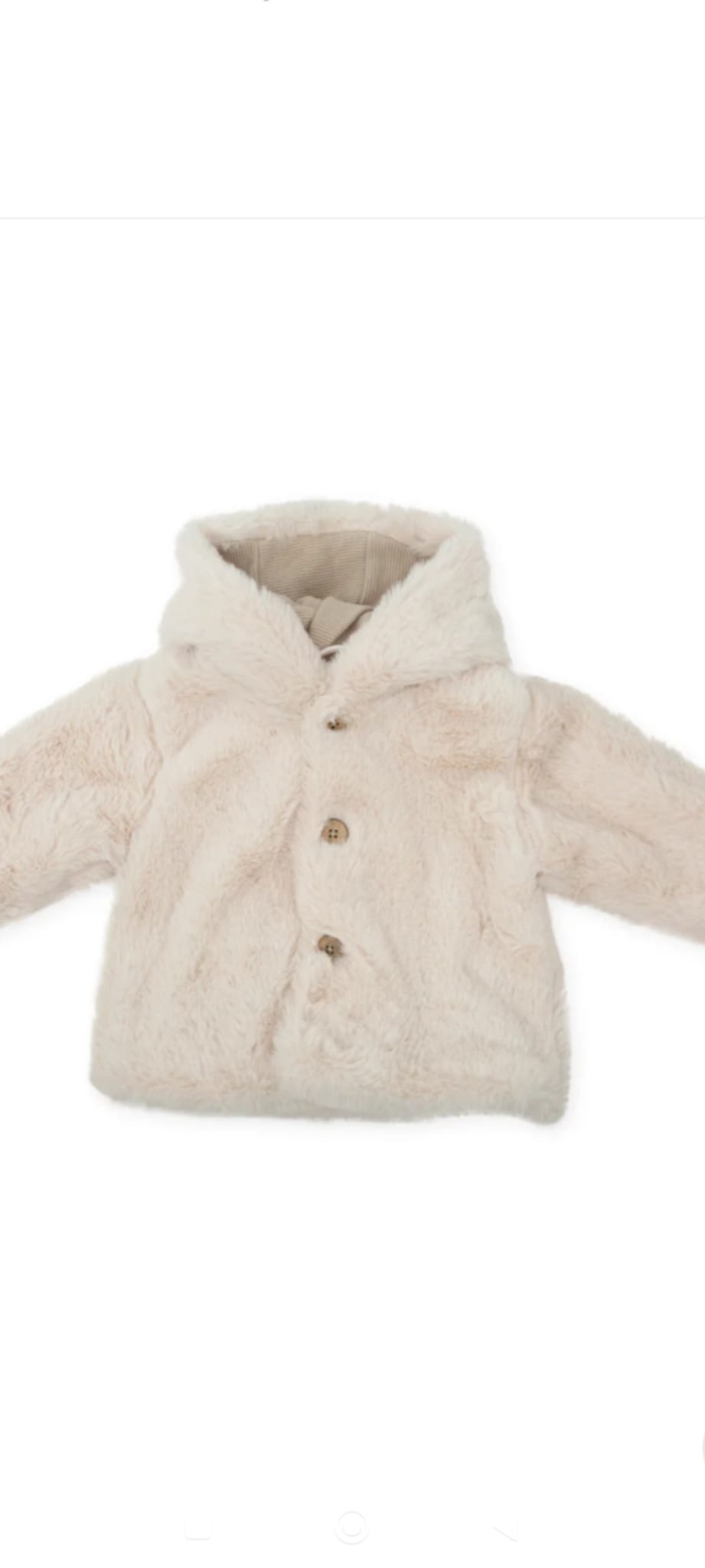 Chaquetón de pelo en color crudo con suave forro de punto y relleno interior.  Abertura delantera con botones.