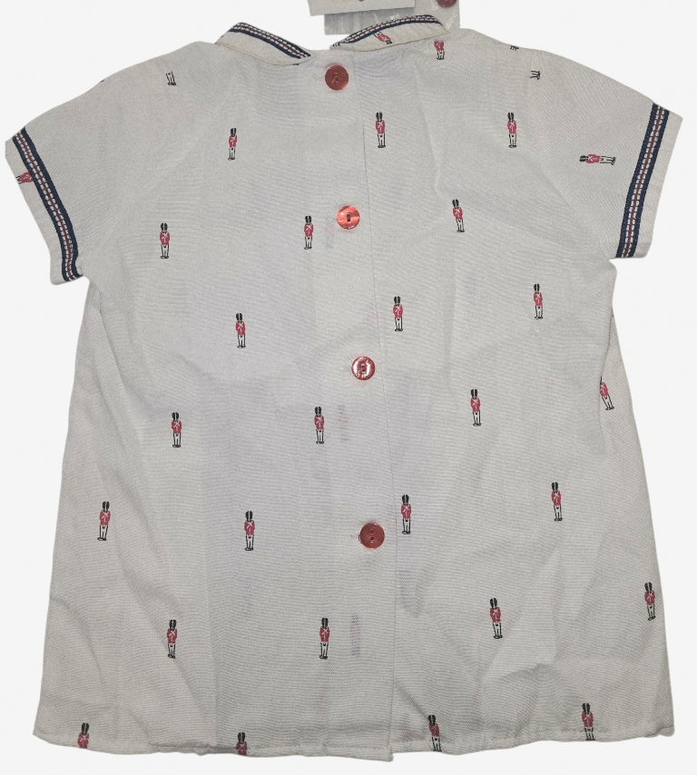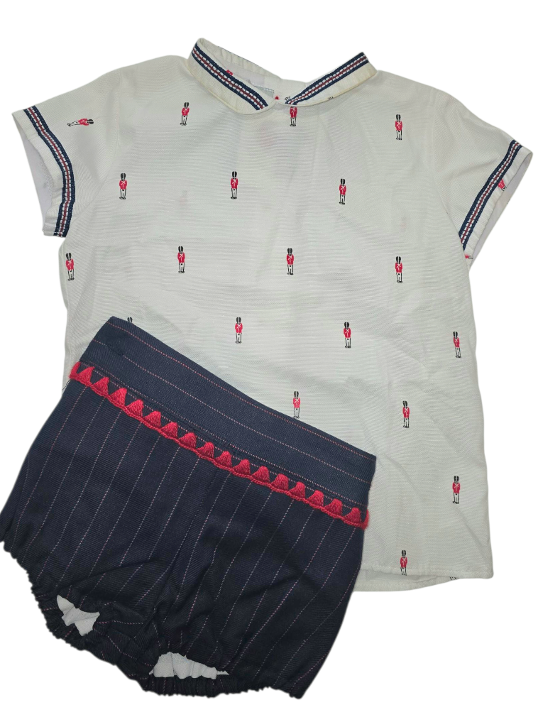 Conjunto de camisa manga corta con pantalón bombacho y jersey de lana a juego