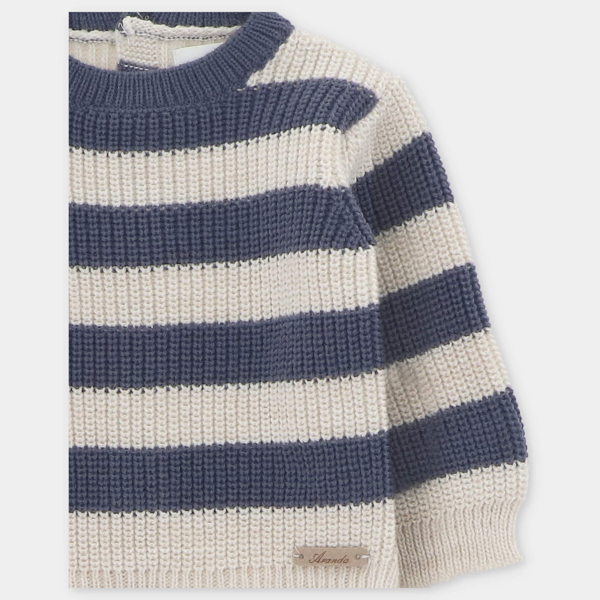 Conjunto de bebé formado por jubón con estructura de punto links de rayas combinadas y pantalón, en azul.