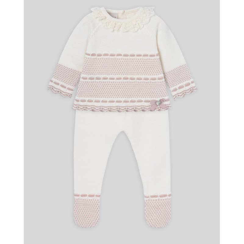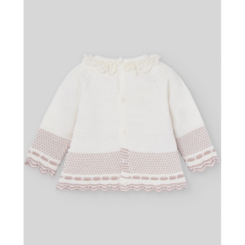 Jubón o jersey para bebé niña en punto combinado con cadenetas.