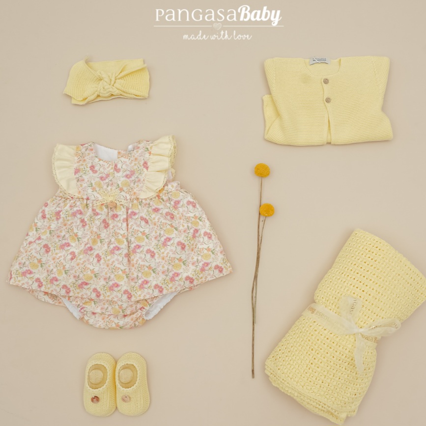 VESTIDO ESTAMPADO FLORAL CON VOLANTITOS EN LOS HOMBROS Y BRAGUITAS A JUEGO